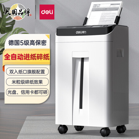 得力 deli 德國5級高保密 全自動碎紙辦公家用文件粉碎機 雙入紙口 自動進紙 2m/min高速碎紙 14500